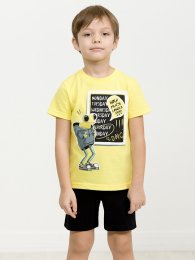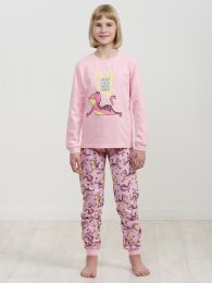 Пижама для девочек из хлопка. Джемпер прямой, свободного силуэта, со спущенным плечевым швом, короткими рукавами, круглым вырезом горловины. Брюки прямые, пояс цельнокроеный с эластичной тесьмой.