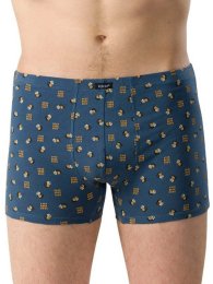 Трусы шорты мужские из трикотажного полотна кулирная гладь, гребенная пряжа с добавлением лайкры, с геометрическим рисунком, средней линией талии, прилегающего силуэта, профилированным гульфиком, повторяющим изгибы тела, пояс на удобной закрытой резинке. Модель полностью закрывает ягодицы и немного опускается на бедра, не ограничивает движения и обеспечивает комфорт в течении всего дня. Подходят как для ежедневного ношения, так и для занятий спортом. Рекомендуется бережная стирка при температуре не выше 30 градусов.