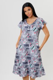 Женское домашнее платье из трикотажного полотна (хлопок 100%), укороченное, прямое, свободного кроя, с короткими втачными рукавами, U-образным вырезом горловины, декоративными пуговками.