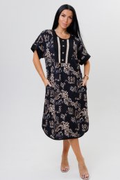 Туника женская из трикотажного полотна кулирная гладь с флористическим рисунком, прямая, свободного кроя, с короткими цельнокроеными рукавами на манжетах, фигурной линией низа, боковыми разрезами, декоративной вставкой по переду. Изделия из натурального хлопка подходят для чувствительной кожи, летнего и зимнего периода, они дышащие и легкие.