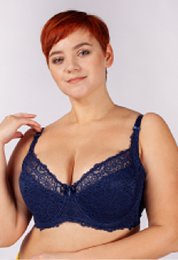 Бюстгальтер женский из плотной микрофибры и эластичного кружева, с мягкими чашками на косточках, с диагональным швом и боковой поддержкой переходящей в регулируемую бретель, нижняя часть чашки дублирована хлопком. Внутри чашка отделана хлопком. Усиленная нижняя резинка по стану. Бретели регулируются по длине, несъемные.
