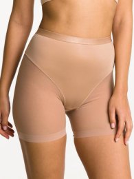 Трусики слипы женские из трикотажного полотна кулирная гладь, с высокой линией талии, двойной х/б ластовицей. По линии талии вдевочная эластичная тесьма, для регулировки тесьмы на внутренней стороне есть петля. Ножки окантованы бейкой из тоненькой рибаны. Классическая модель повседневного белья.